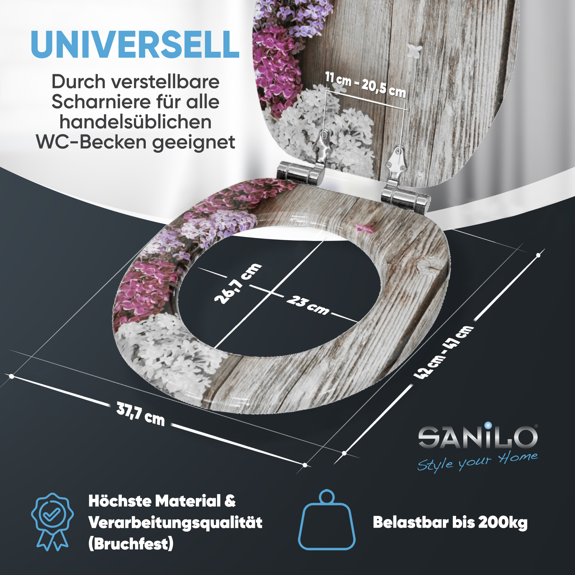 • passend für alle handelsüblichen WC-Becken (Hänge- und Steh WC-Becken)