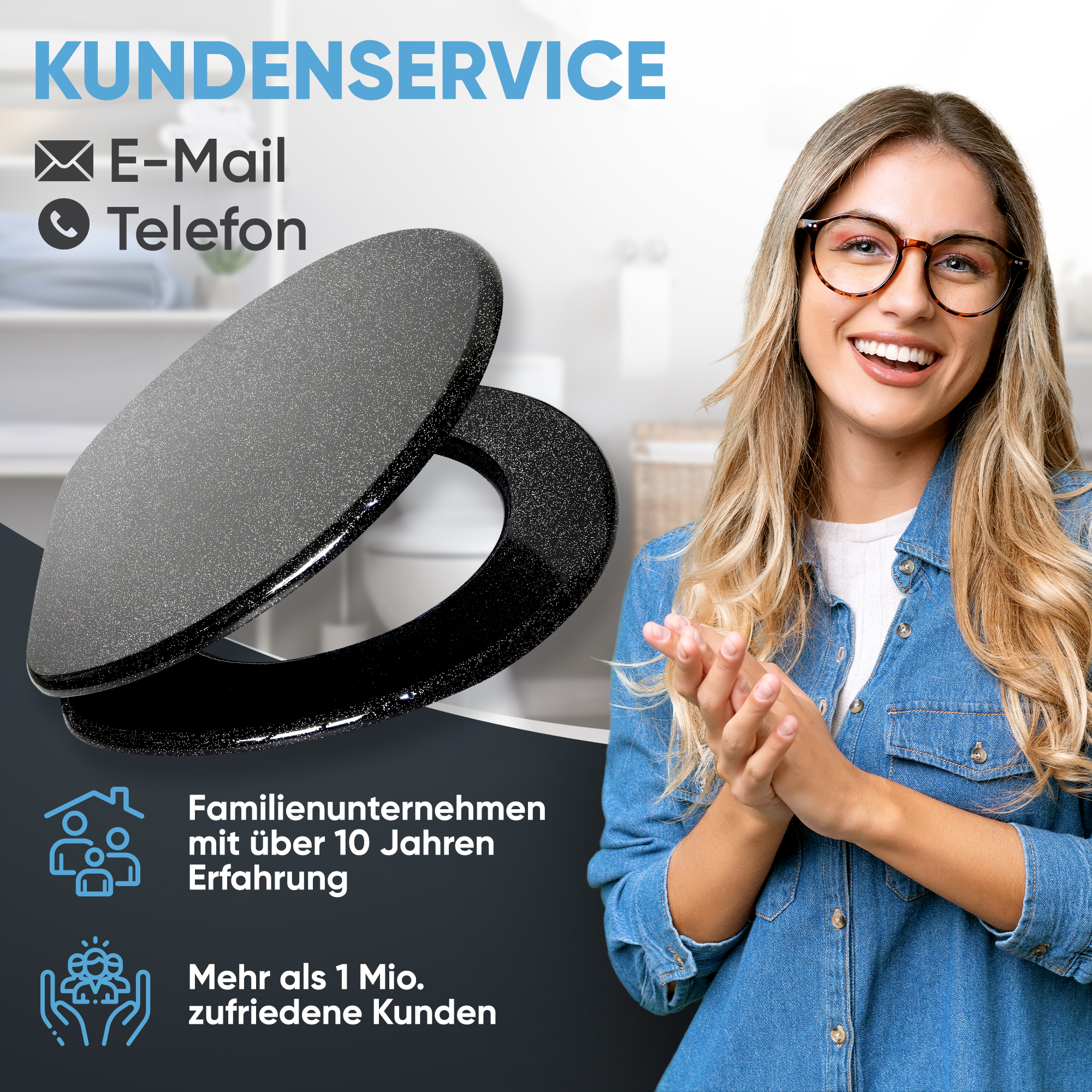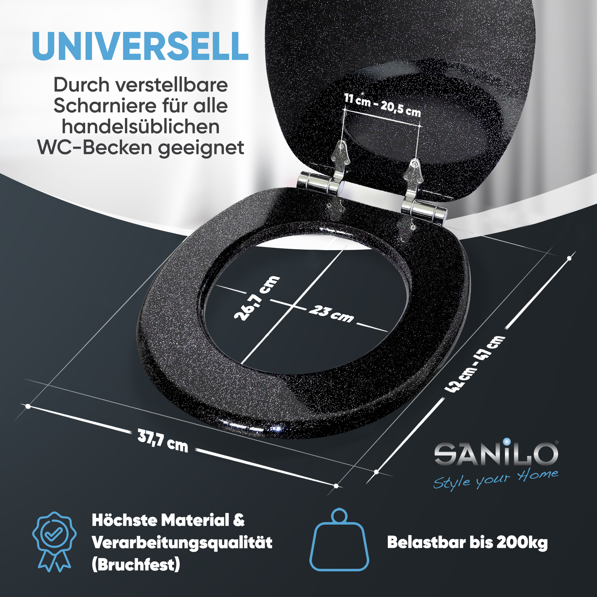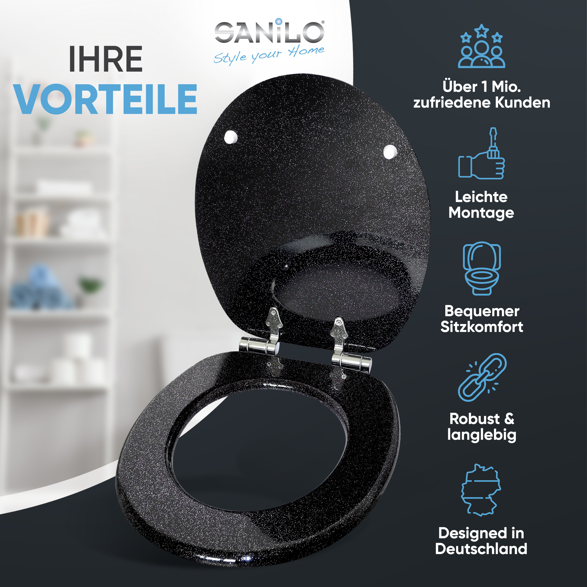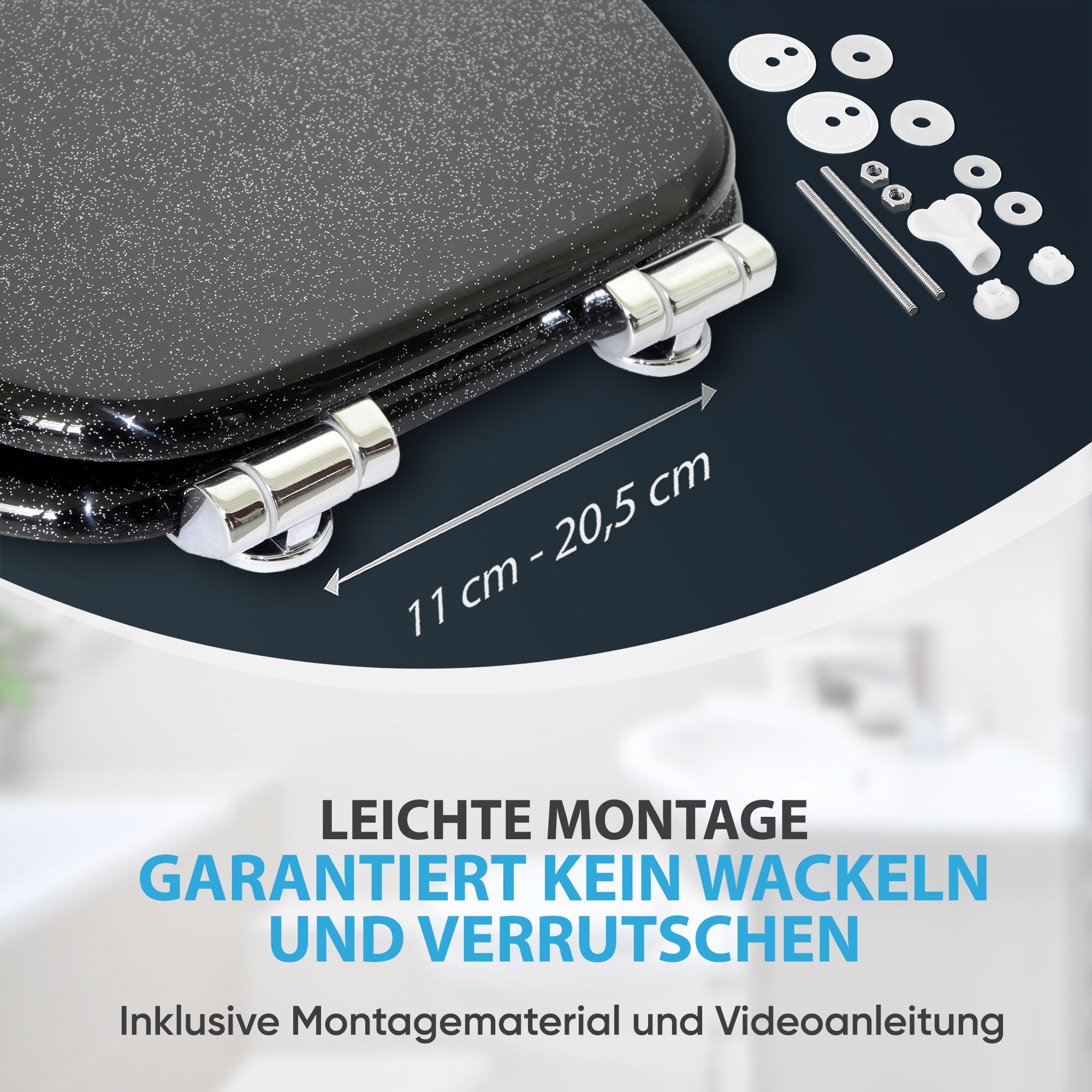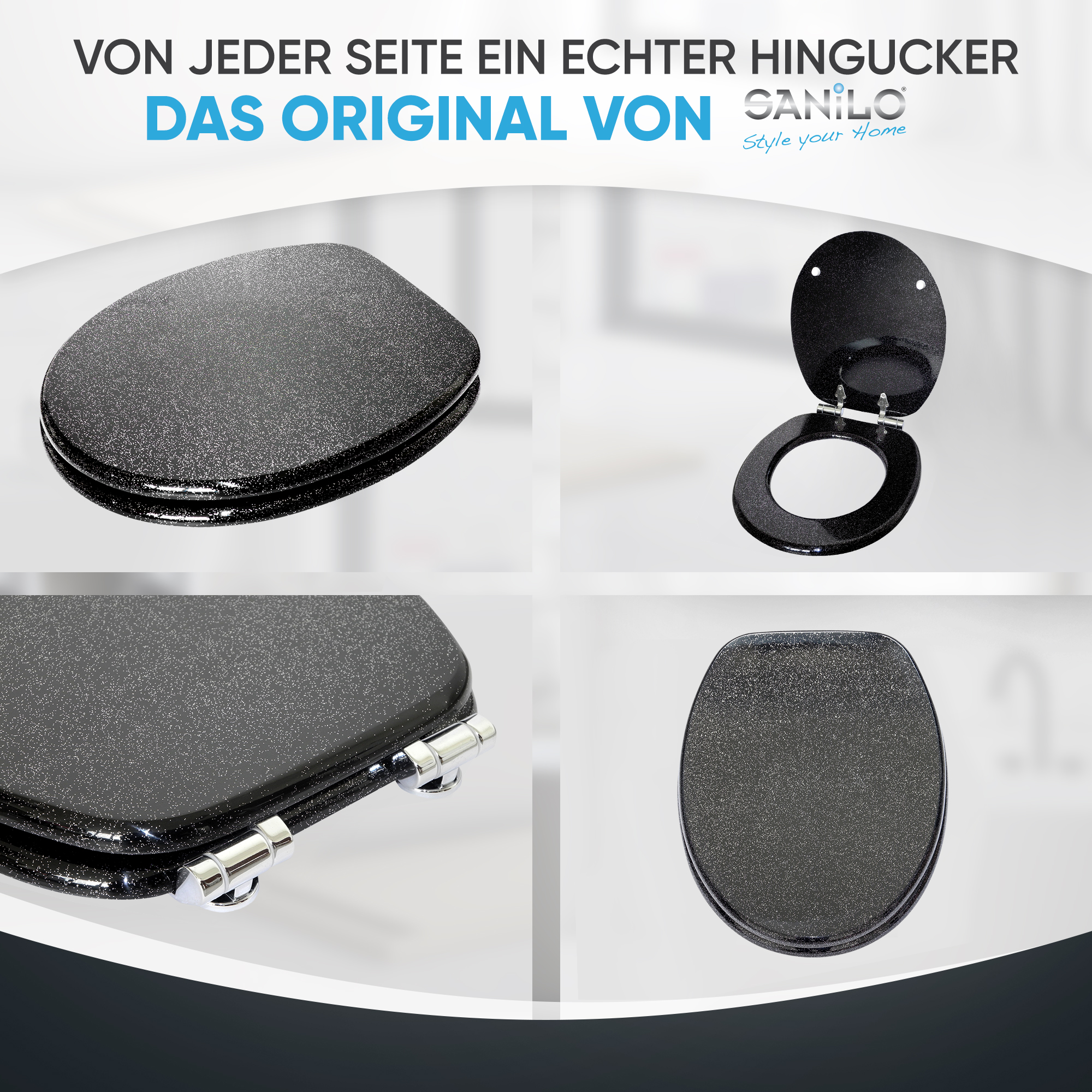 WC-Sitz mit Absenkautomatik Glitzer Schwarz - Premium Toilettendeckel direkt vom Hersteller