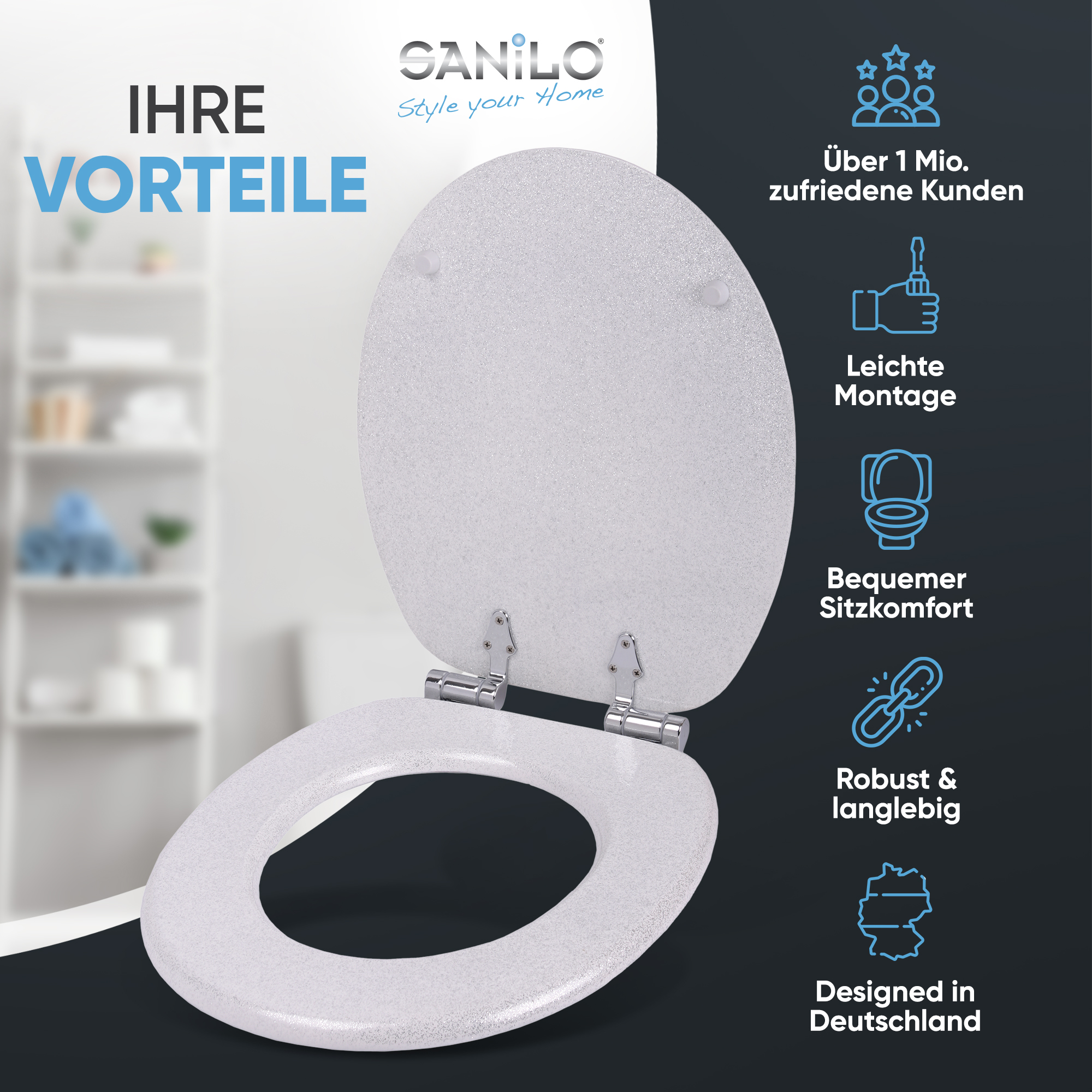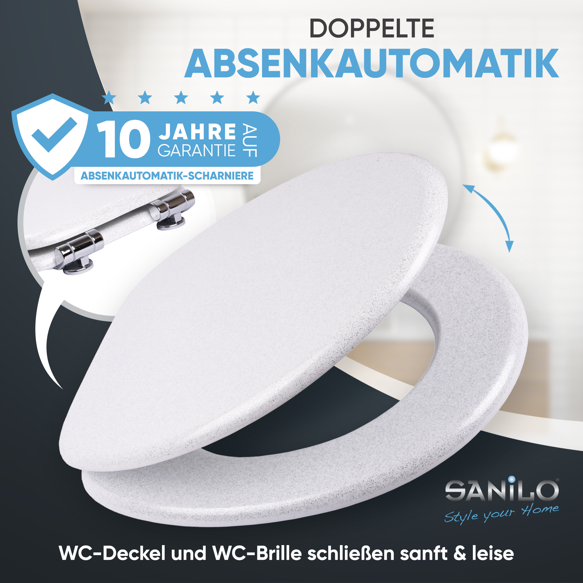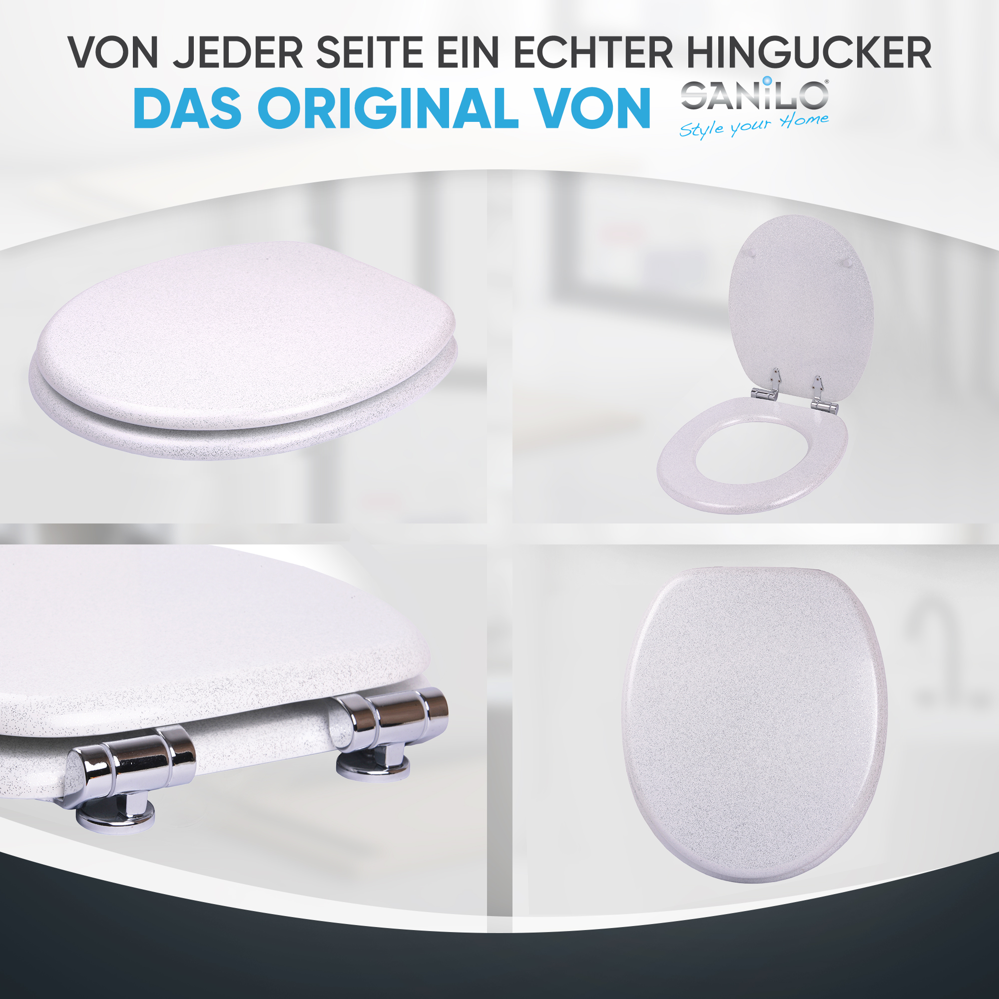 WC-Sitz mit Absenkautomatik Glitzer Weiß - Premium Toilettendeckel direkt vom Hersteller