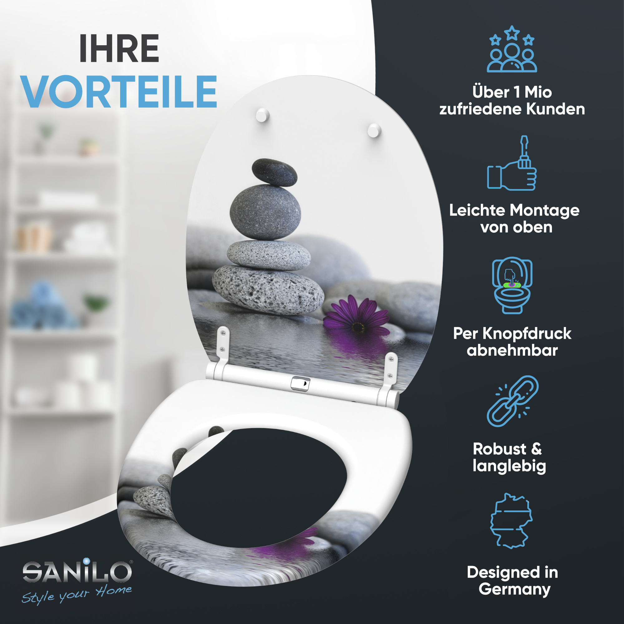 WC-Sitz mit Absenkautomatik und Schnellverschluss Energy Stones - Premium Toilettendeckel direkt vom Hersteller