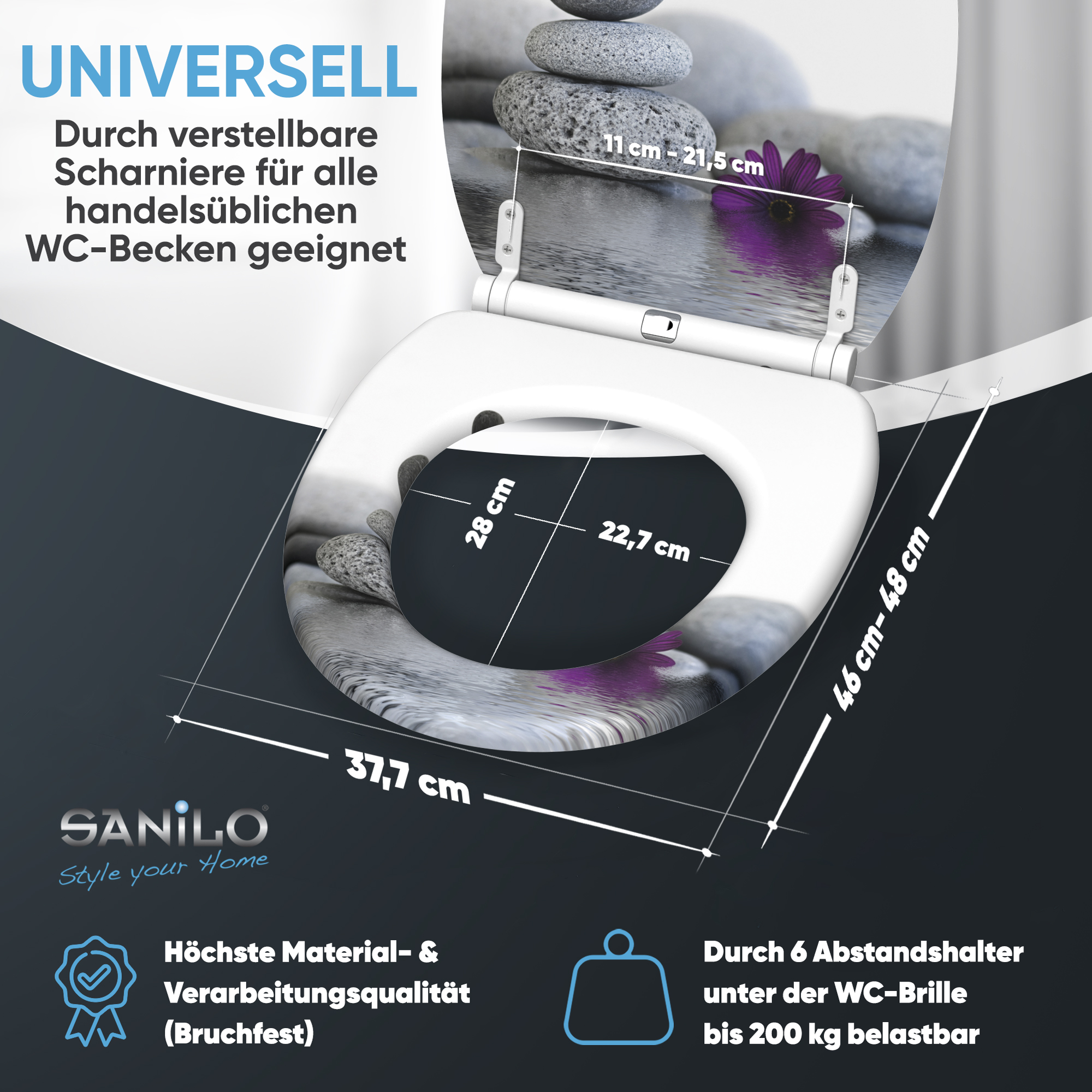 • passend für alle handelsüblichen WC-Becken (Hänge- und Steh WC-Becken)
