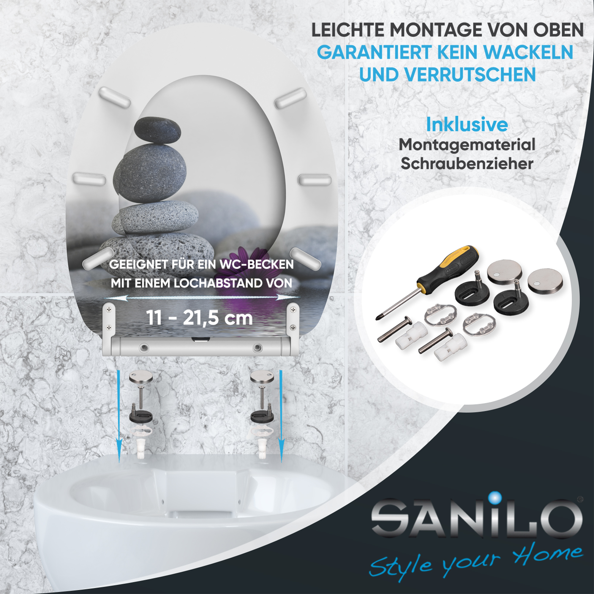 • 6 stabile Abstandshalter unter dem WC-Sitz