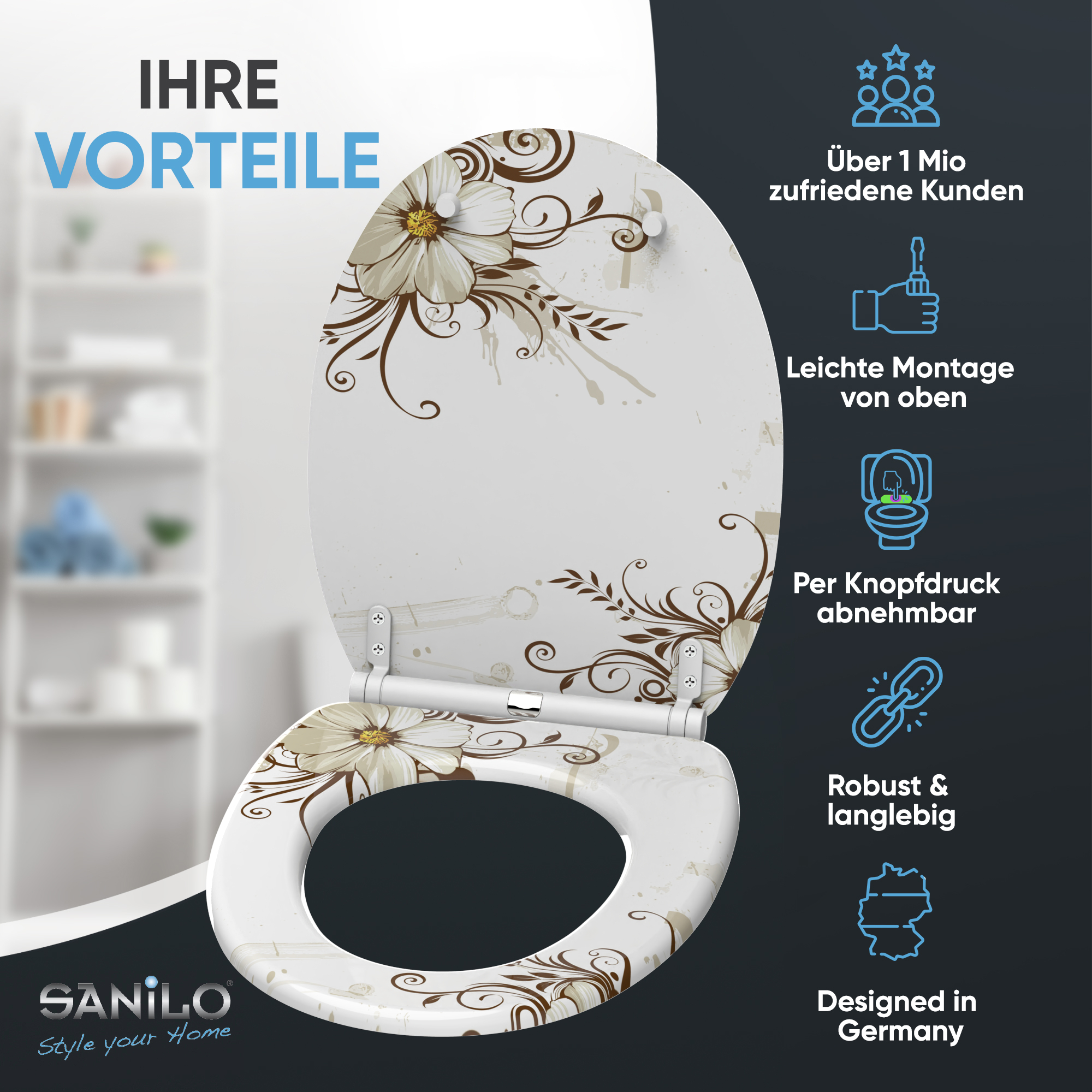 WC-Sitz mit Absenkautomatik und Schnellverschluss Flower - Premium Toilettendeckel direkt vom Hersteller