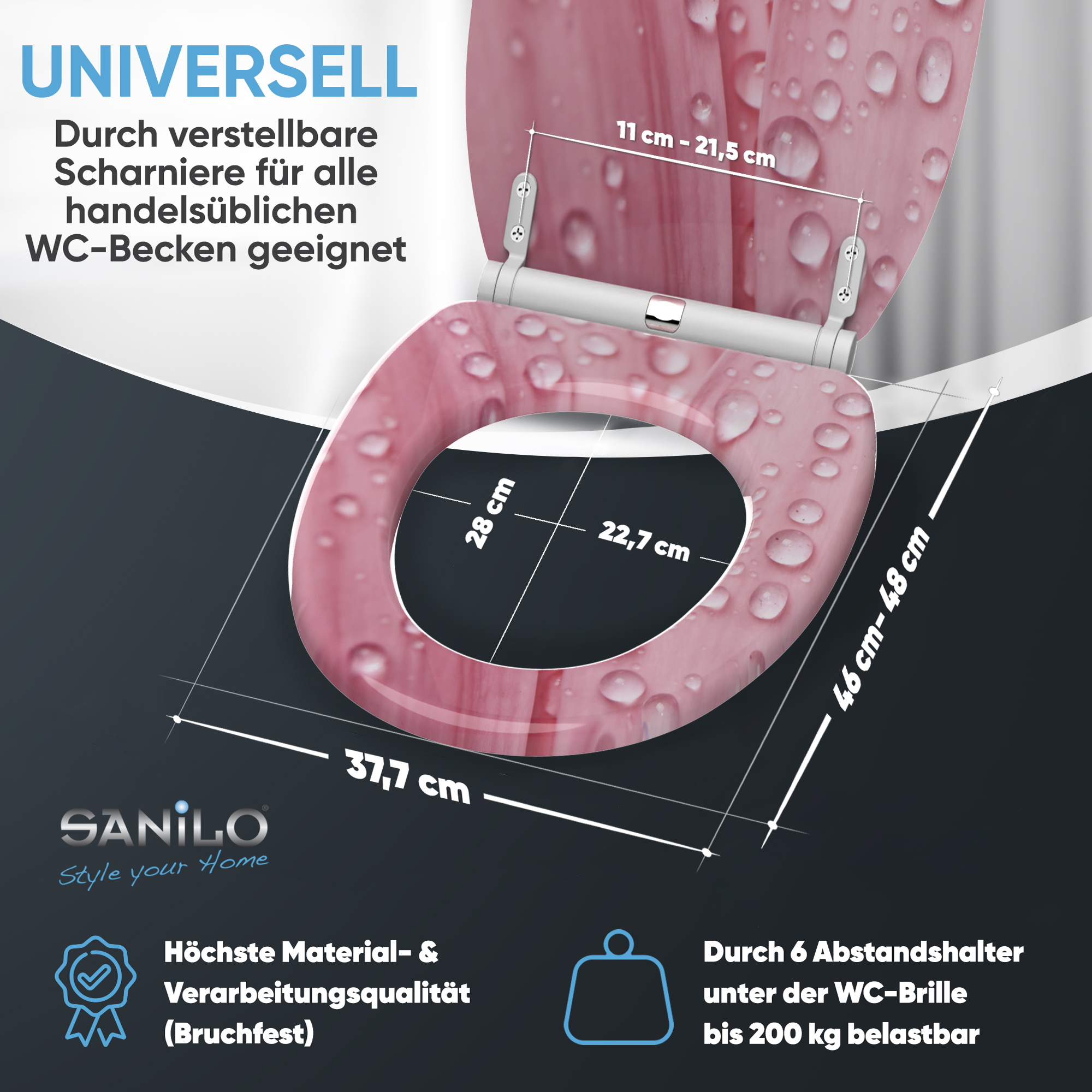 • passend für alle handelsüblichen WC-Becken (Hänge- und Steh WC-Becken)