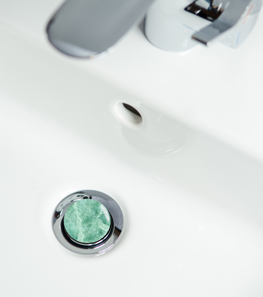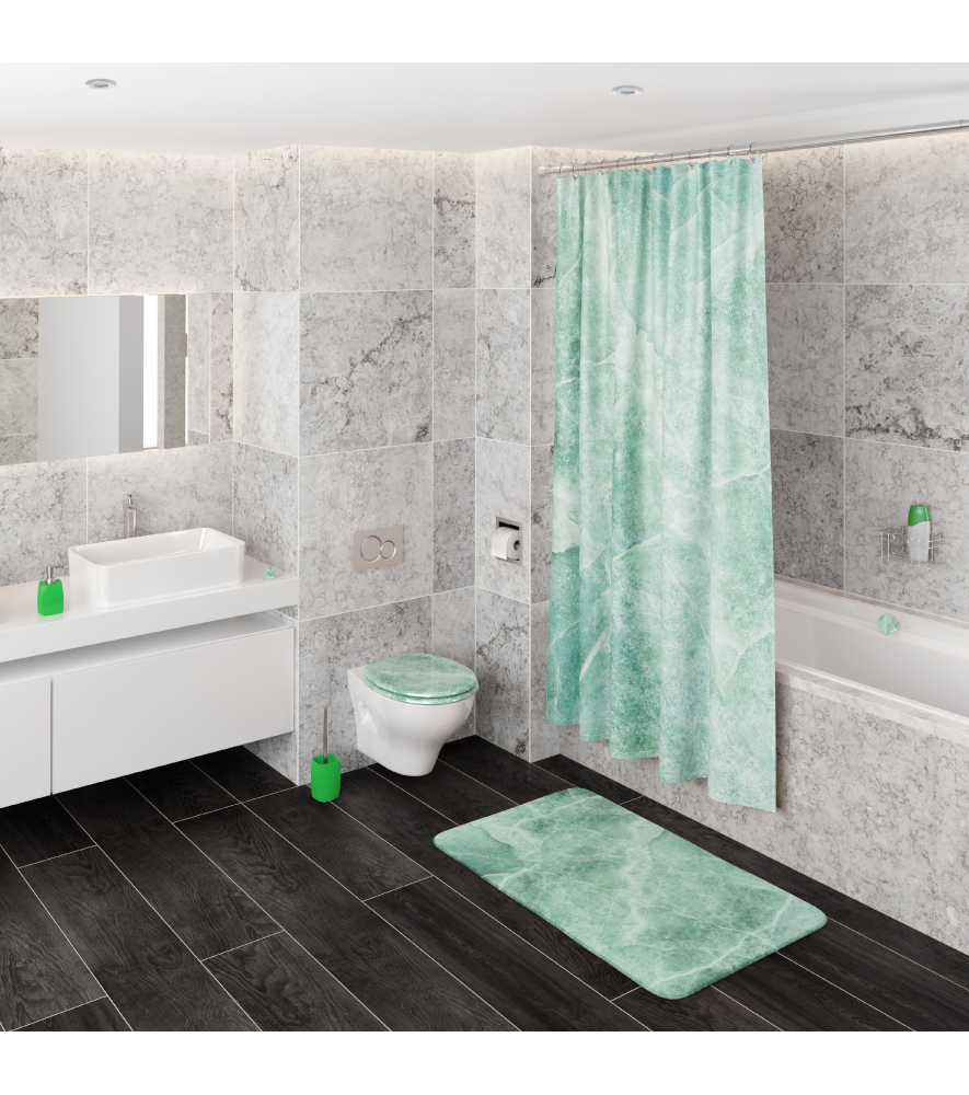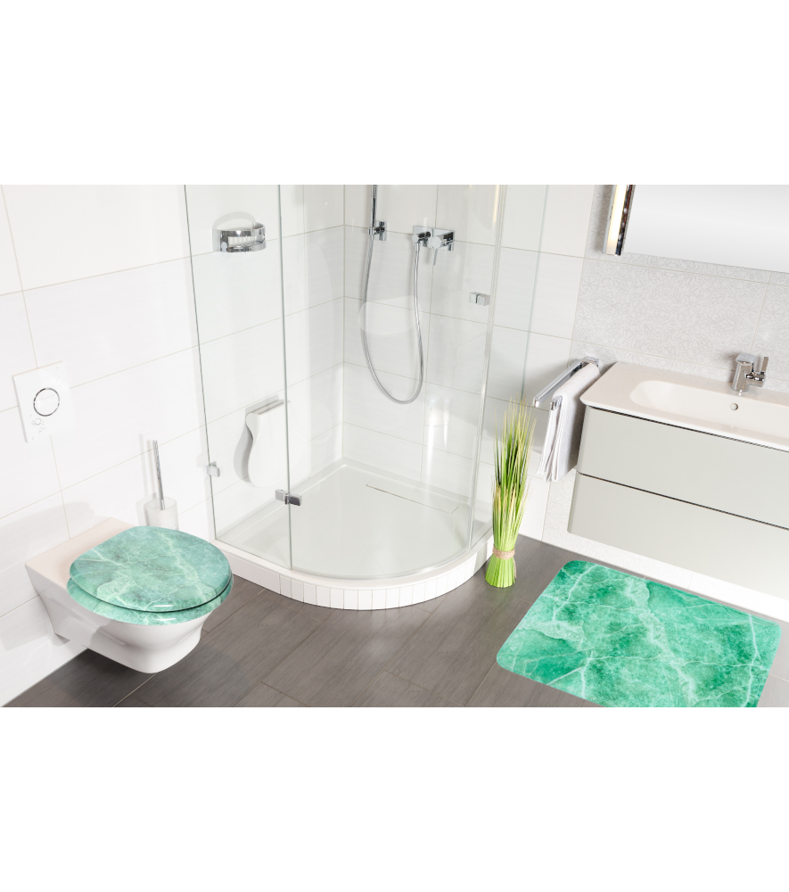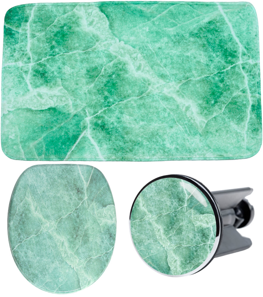 WC-Sitz, Badteppich 70 x 110 cm und Waschbeckenstöpsel