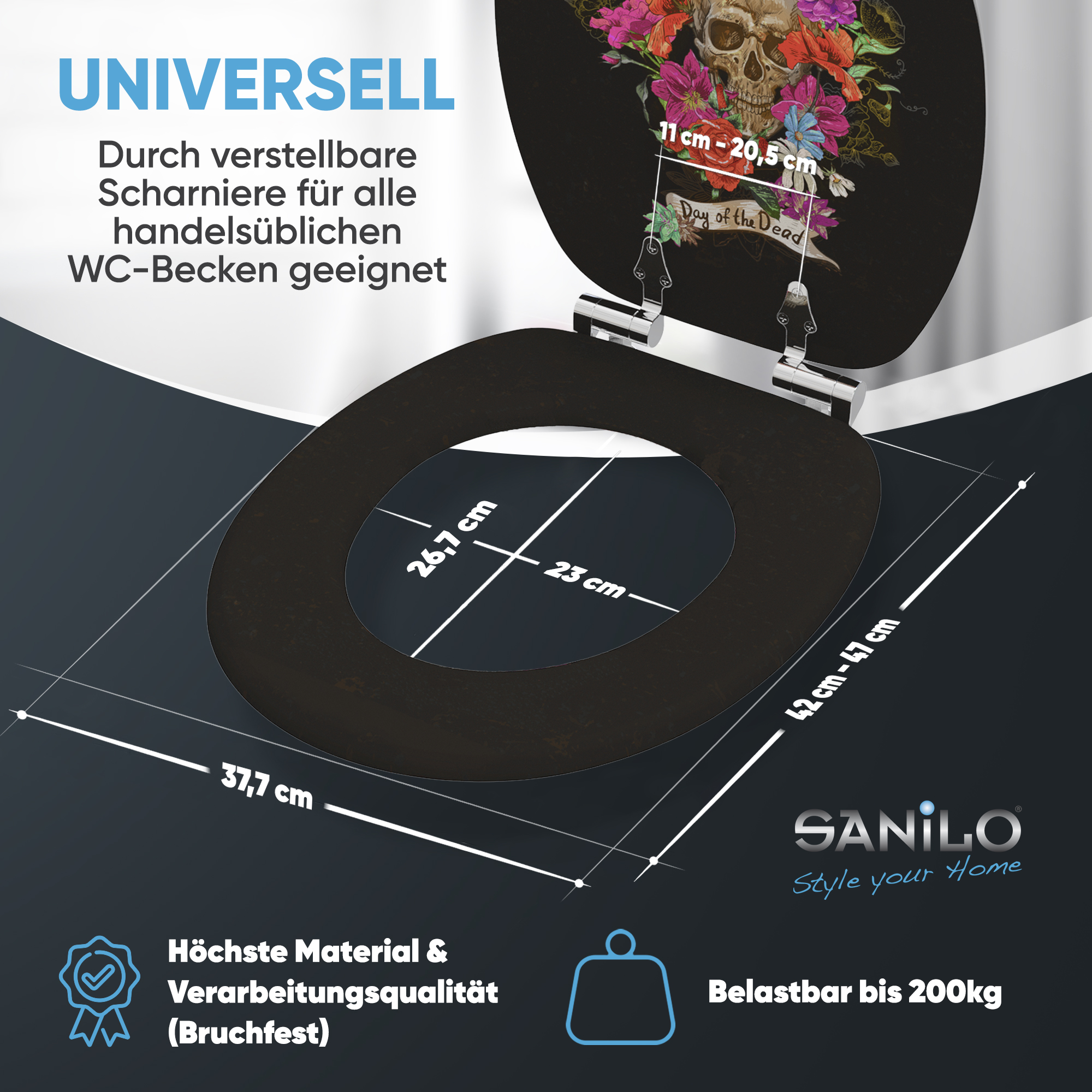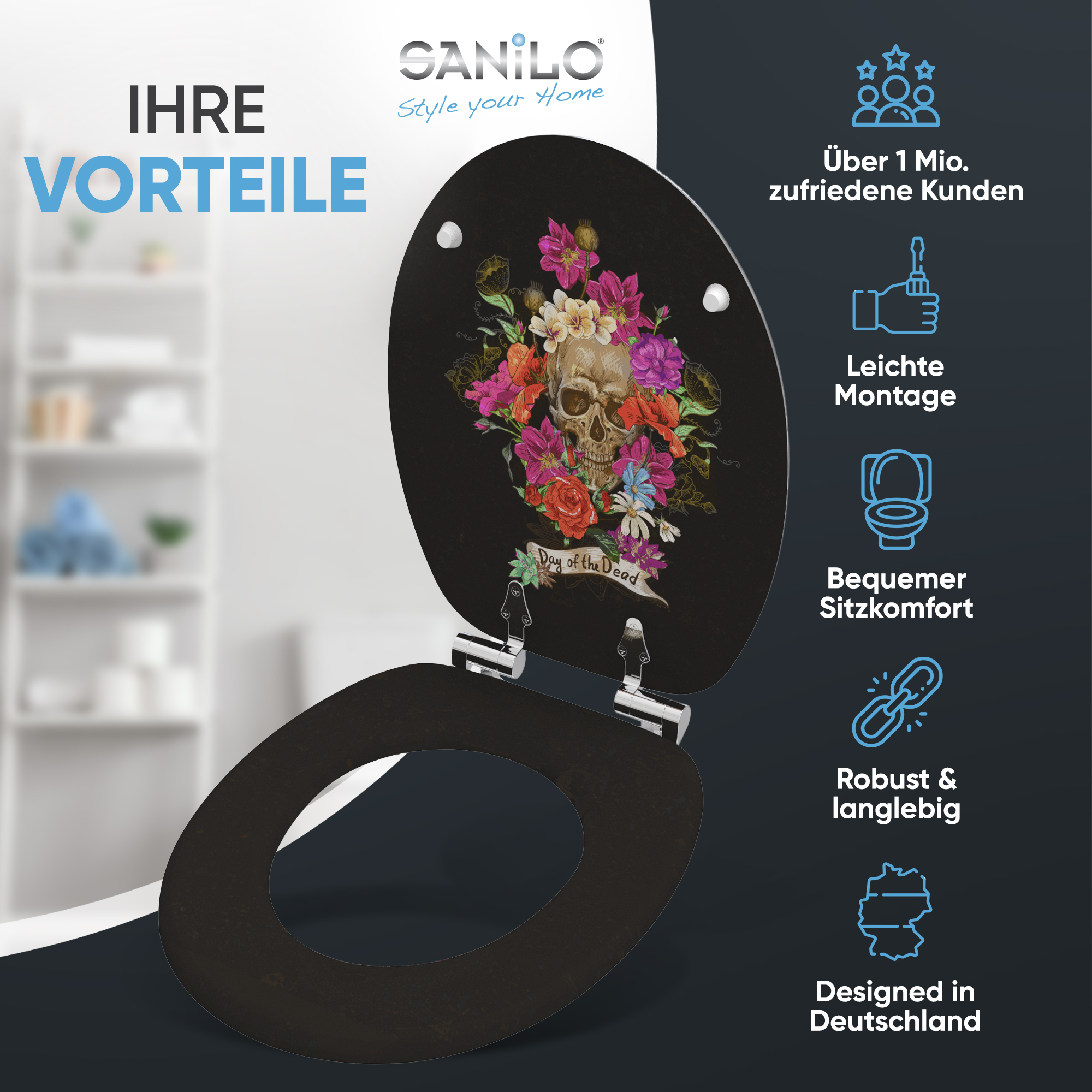 WC-Sitz mit Absenkautomatik Day of the Dead - Premium Toilettendeckel direkt vom Hersteller