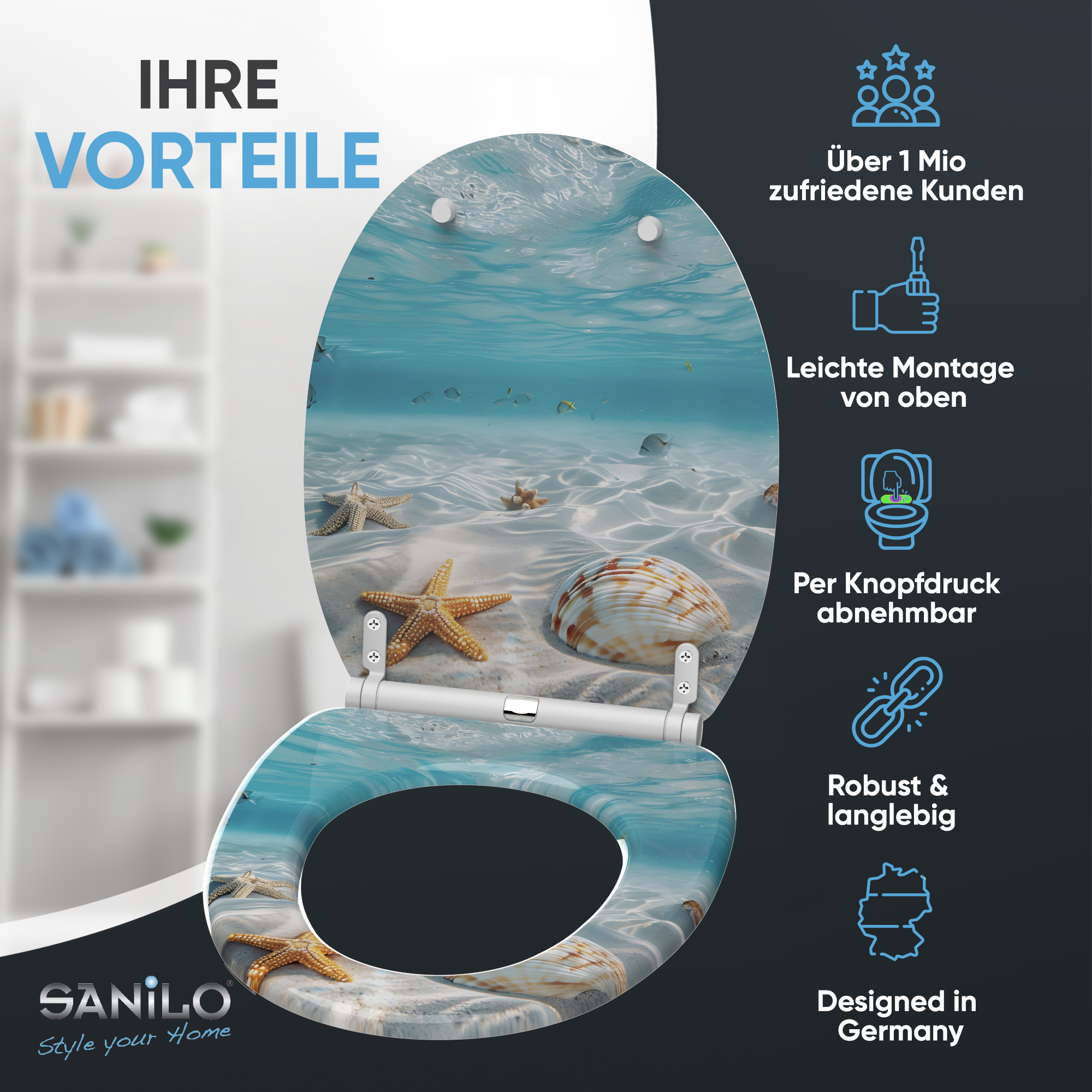 • Toilet seat made from high-quality wood