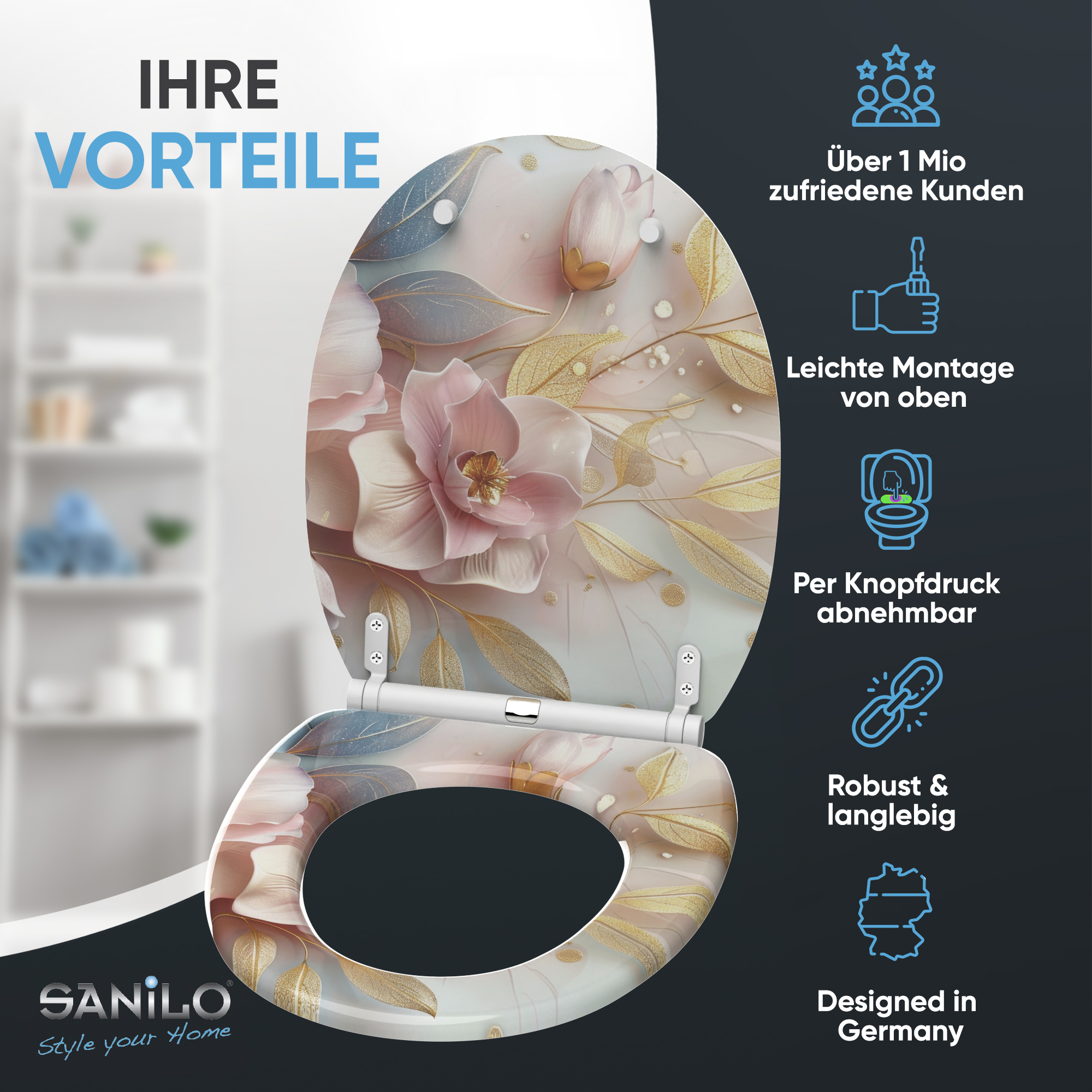• Toilet seat made from high-quality wood